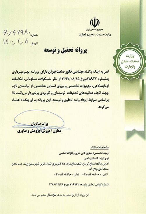 Fakoor Industrial & Mineral Research Center (FIMRC), a sister company to FST Co. (the biggest private general contractor nationwide), is the most famous and most innovative mineral processing and metallurgy center in the field of ferrous and non-ferrous minerals. Its modern facilities and software as well as knowledge and expertise are unique.