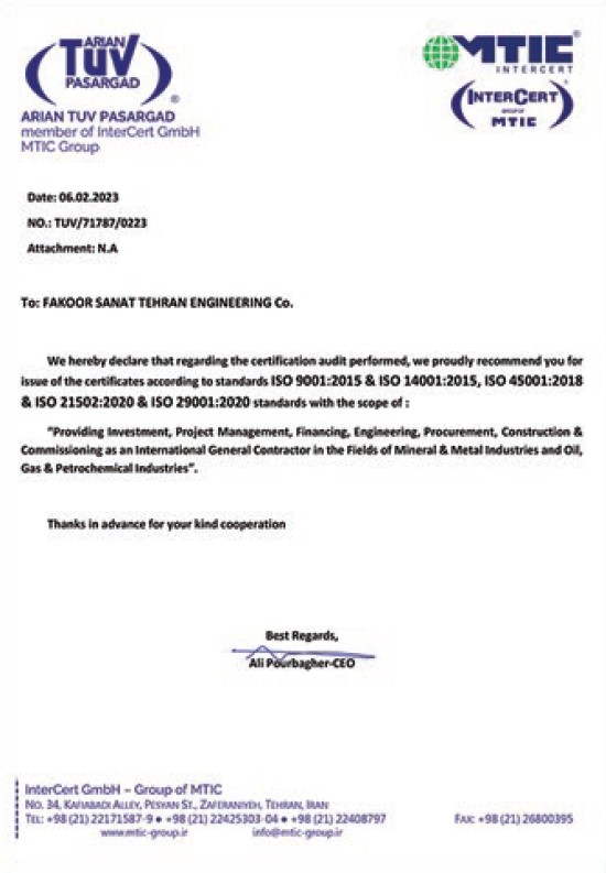 Fakoor Sanat Tehran Engineering Co. (FST) has fulfilled its development trend in completing Iron and Steel industrial chain in its three decades of activity. FST has constructed more than 50 turnkey EPC projects includes iron ore beneficiation plants, pelletizing plants, steel production plants and copper refineries.
